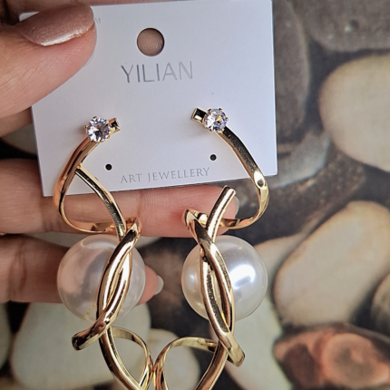 Statement long hoops with rain drop pearl hanging